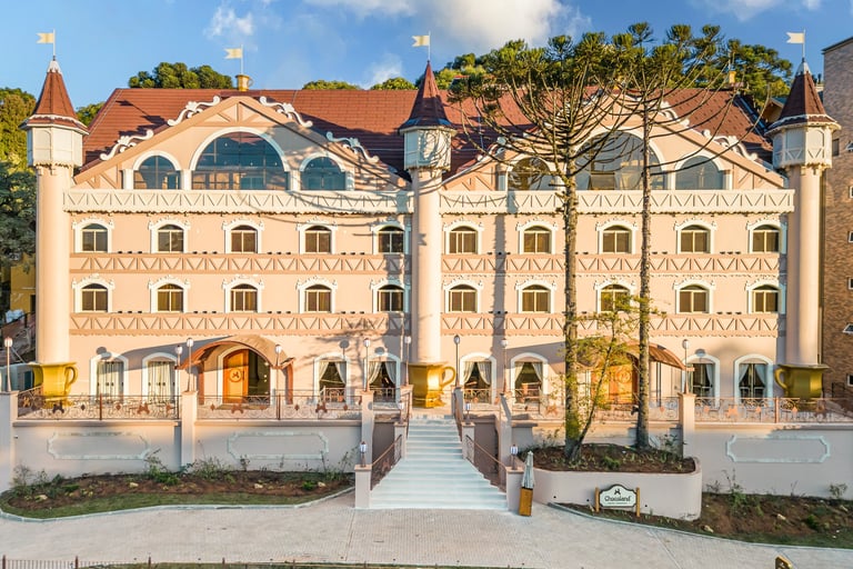 O hotel fica próximo ao centro de Gramado, na Serra Gaúcha, cidade reconhecida como a Capital Nacional do Chocolate Artesanal.